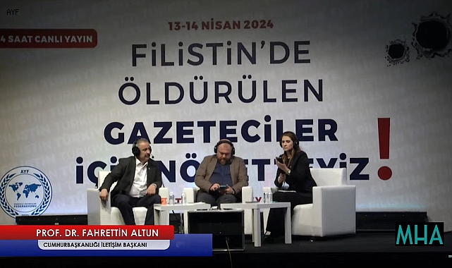 Anadolu Yayıncılar Federasyonu (AYF) tarafından gerçekleştirilen Filistin’de Öldürülen gazetecilerin anıldığı canlı yayına katılan Cumhurbaşkanlığı İletişim Başkanı Fahrettin Altun önemli mesajlar verdi.Altun, Sizin şahsınızda gerçekten çok büyük bir duyarlılık göstererek Filistin’de, Gazze’de, İsrail tarafından katledilen Gazetecilere yine orada görev yapan Gazetecilere verdiğiniz destekler dolayısıyla Filistin’in haklı davasında gerçekten hakikati duyurmaya yönelik çaba sarf eden bütün Gazeteciler çok şanlı, şerefli bir iş yapıyorlar. Bizde bulunduğumuz her ortamda Ulusal, Uluslararası her Platformda bu haklı mücadeleye destek vermeye çabalıyoruz. Gerçekten de Türkiye’de Medyamız, Türk Medyası çok büyük bir duyarlılık gösterdi. Türkiye öteden beri Filistin’in haklı davasında masum sivillerin., masum Filistinlilerin hep yanında, arkasında durdu. Yine İsrail’in zulümlerine karşı Türkiye çok güçlü ses çıkardı ve medyamız da bu noktada gerçek anlamda bir duyarlılık ortaya koydu dedi.